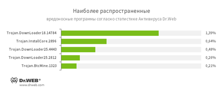 Суммарно майнеры составят порядка 0.3 от всех пойманных за месяц. Не каждый месяц, но периодически майнеры попадают в топ самых распространенных вредоносных программ.