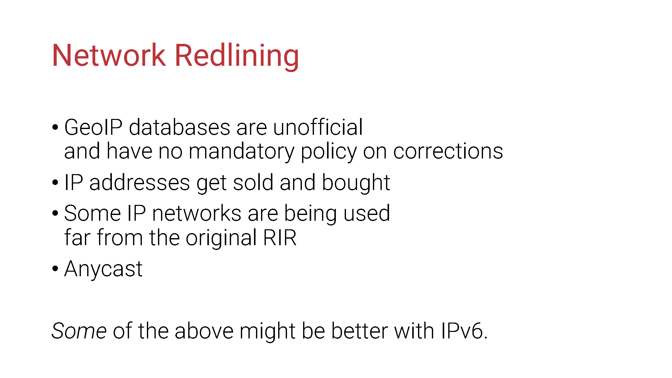 Если ограничиться только техническими аспектами, то, на текущий момент, первым на ум приходит тот факт, что геобазы данных являются коммерческими продуктами коммерческих компаний, каждая из которых собирает данные собственными, часто не до конца ясными, способами. Подобные продукты могут быть использованы для статистических или других исследований, однако предоставление широкой аудитории production-сервиса на основе такого продукта является абсолютным идиотизмом по бесчисленному множеству причин.