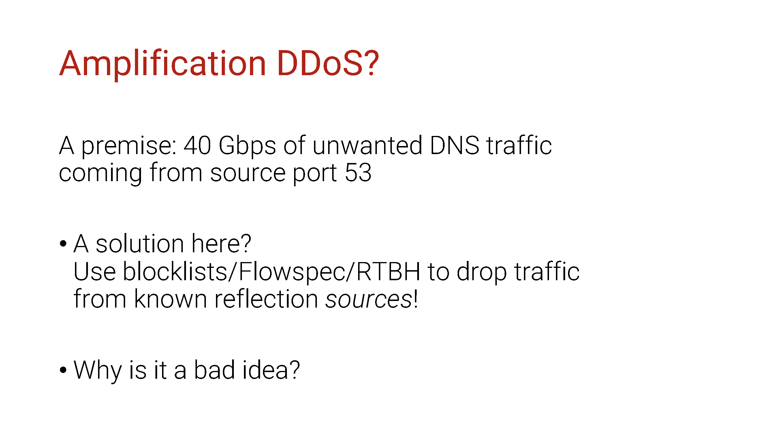 Что если мы задействуем какую угодно технологию из тех, что у нас есть, для того, чтобы ограничить доступ к этим уязвимым серверам? Пусть уже наконец пропатчат все эти DNS-рефлекторы, чтобы они перестали быть угрозой, так?