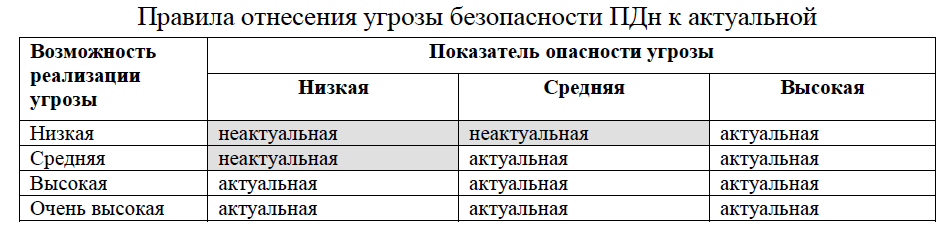 Ну и последнее – актуальность угрозы. Определяется по таблице: