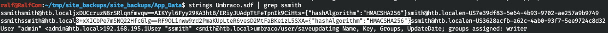 После этого, еще раз проходимся grep’ом в поисках строк admin и ssmith. И находим хеши для данных пользователей.