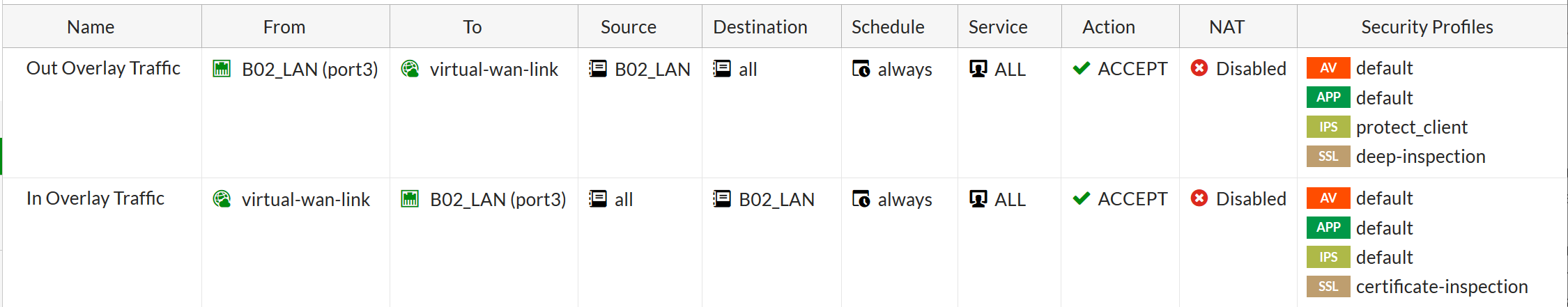 все маршруты и политики безопасности могут ссылаться на него, а не на интерфейсы, входящие в него. Как минимум, нужно разрешить трафик из внутренних сетей в SD-WAN. При создании правил для них можно применить защитные меры, такие, как IPS, антивирус и раскрытие HTTPS.