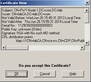 8) В случае если CRL Distribution Point (в примере это сервер центра сертификации) находится за одним из шлюзов и другие шлюзы будут соединяться с ним через VPN-соединение, эти шлюзы не смогут загрузить CRL, потому что не смогут построить VPN из-за невозможности проверки сертификата первого шлюза. Получиться замкнутый круг. В этом случае необходимо отключить проверку CRL для этого центра сертификации. Для этого необходимо снять все флажки в разделе «Retrieve CRL From» во вкладке OPSEC PKI: