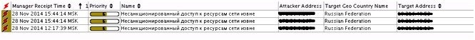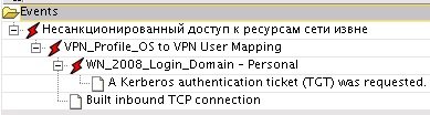 Рис. 5. Пример сопоставления событий по инциденту «несанкционированный доступ к ресурсам извне»