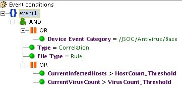 В качестве примера можно привести корреляционное правило «INC_AV_Virus Anomaly Activity», которое отслеживает превышение среднего показателя срабатываний антивируса (вычисляется на основании профиля) за определенный период.