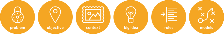 Dan Brown описывает методику EightShapes для описания результатов этапа исследований и концептуального проектирования. В ней 6 ключевых аспектов — проблема, цель, контекст, ключевая идея, правила и модели.
