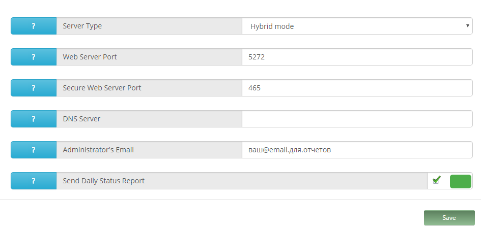 Hybrid mode — Гибридный режим. Объединяет два других, рекомендую ставить его, поскольку полноценно фильтровать спам он не сможет без пропуска исходящего трафика через себя.