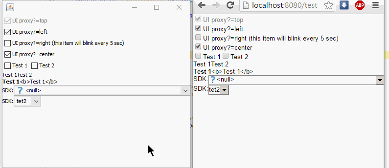 - Полностью не совместимость с AWT/Swing кодом (есть костыльный класс TargetAWT/TargetVaadin который имеет методы для конвертацию компонентов, но эти классы не доступы для плагинов).