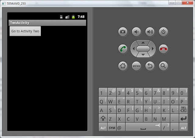Экран будет отображать TextView с текстом «This is Activity Two». Используем файл two.xml в методе setContentView в ActivityTwo.java
