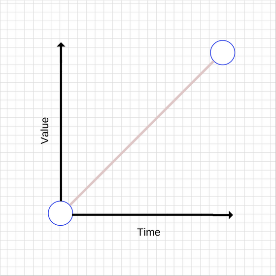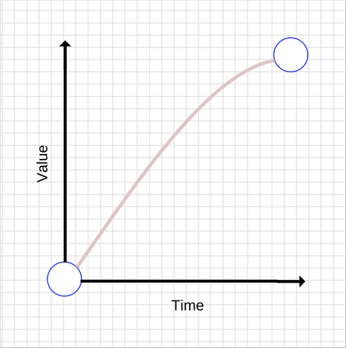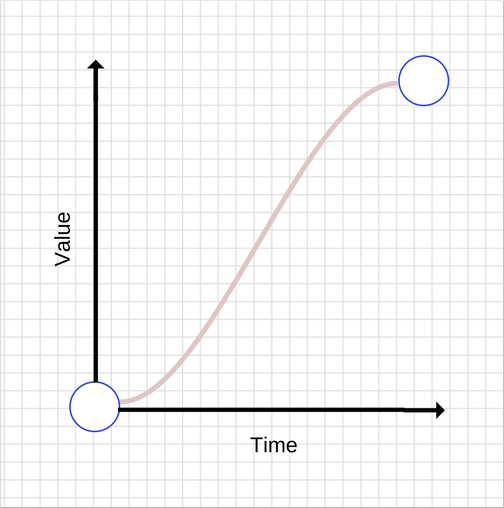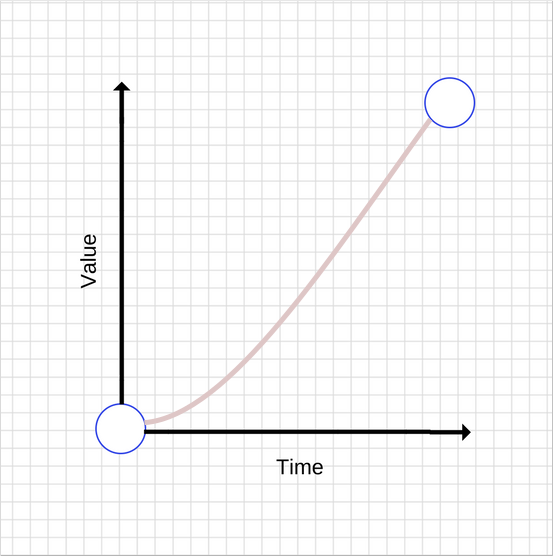 Видно, что с течением времени значение равномерно возрастает. Линейные перемещения, однако, воспринимаются как неестественные. В целом, надо отметить, что подобных анимаций стоит избегать.
