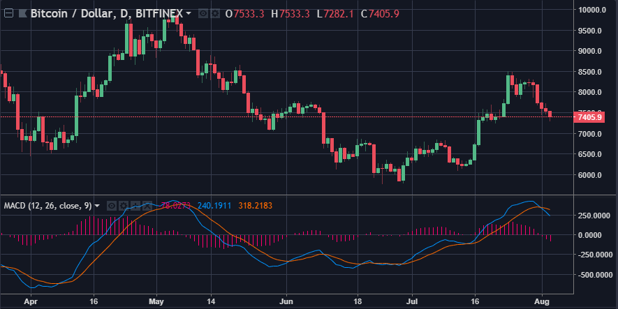 Формула расчета довольно простая, берутся две ema с динным в 26 едениц и коротким окном в 12 еденицы и вычитаются, полученная линия и будет искомым индикатором. Взяв от этой разности еще одну ema c шагом в 3 еденицы получим сигнальную линию. Гистограмма, которую Джеральд добавил позже высчитывается разницей между двумя предыдущими результатами и по сути является средневзвешенной производной.
