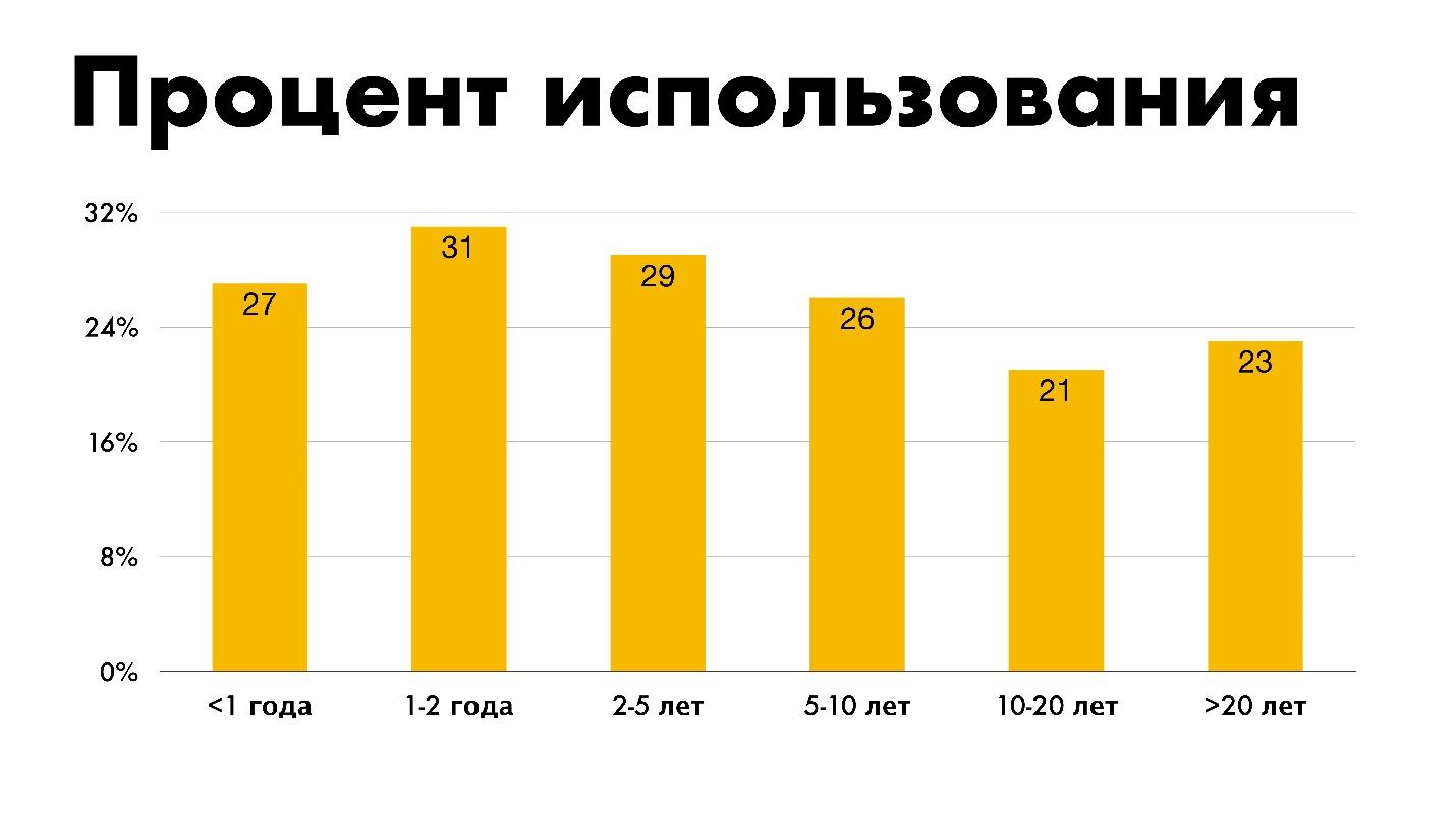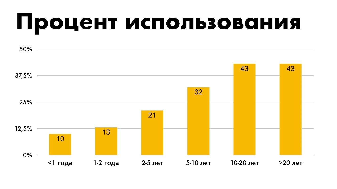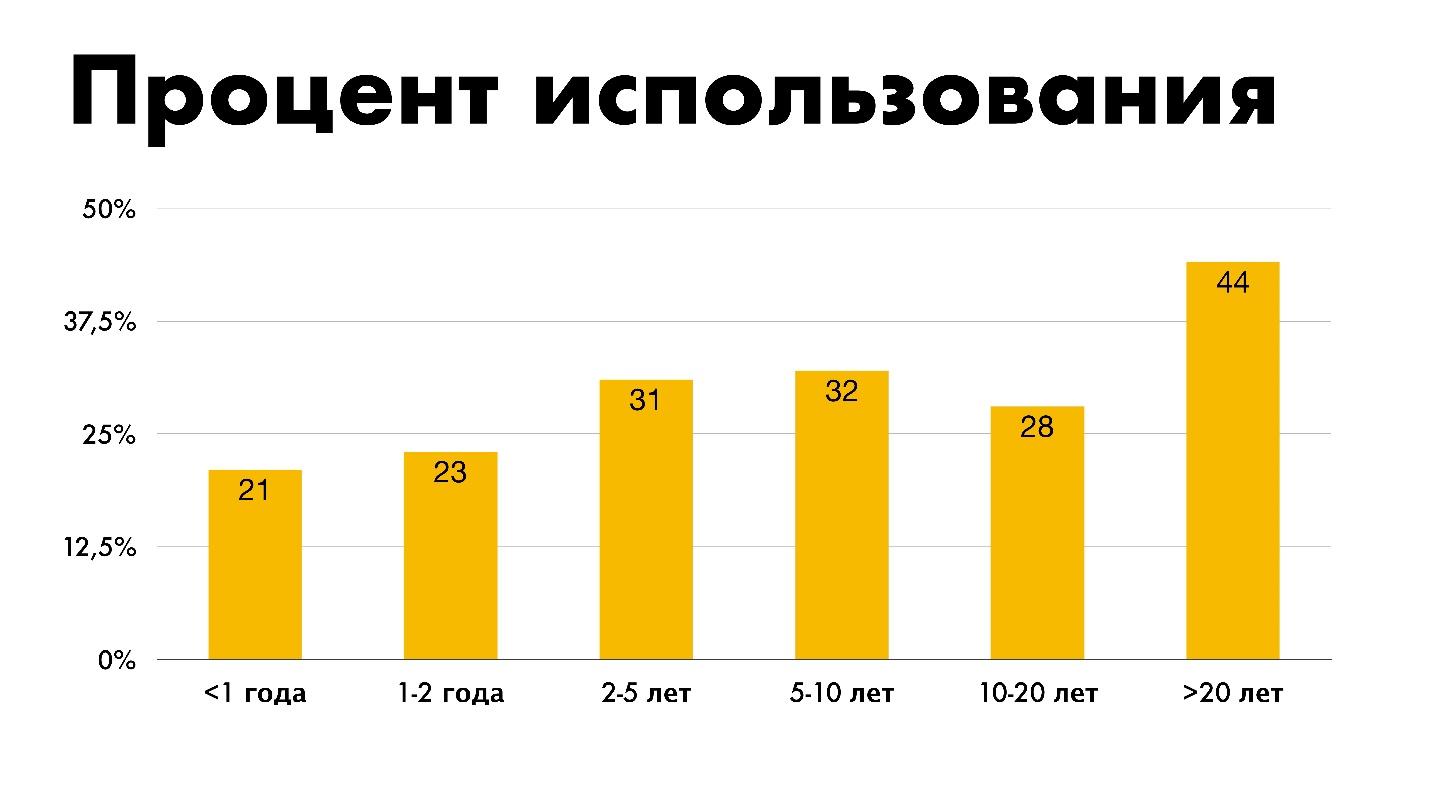 Процент использования ровный, но новички не жалуют — у них и так проблем хватает.
