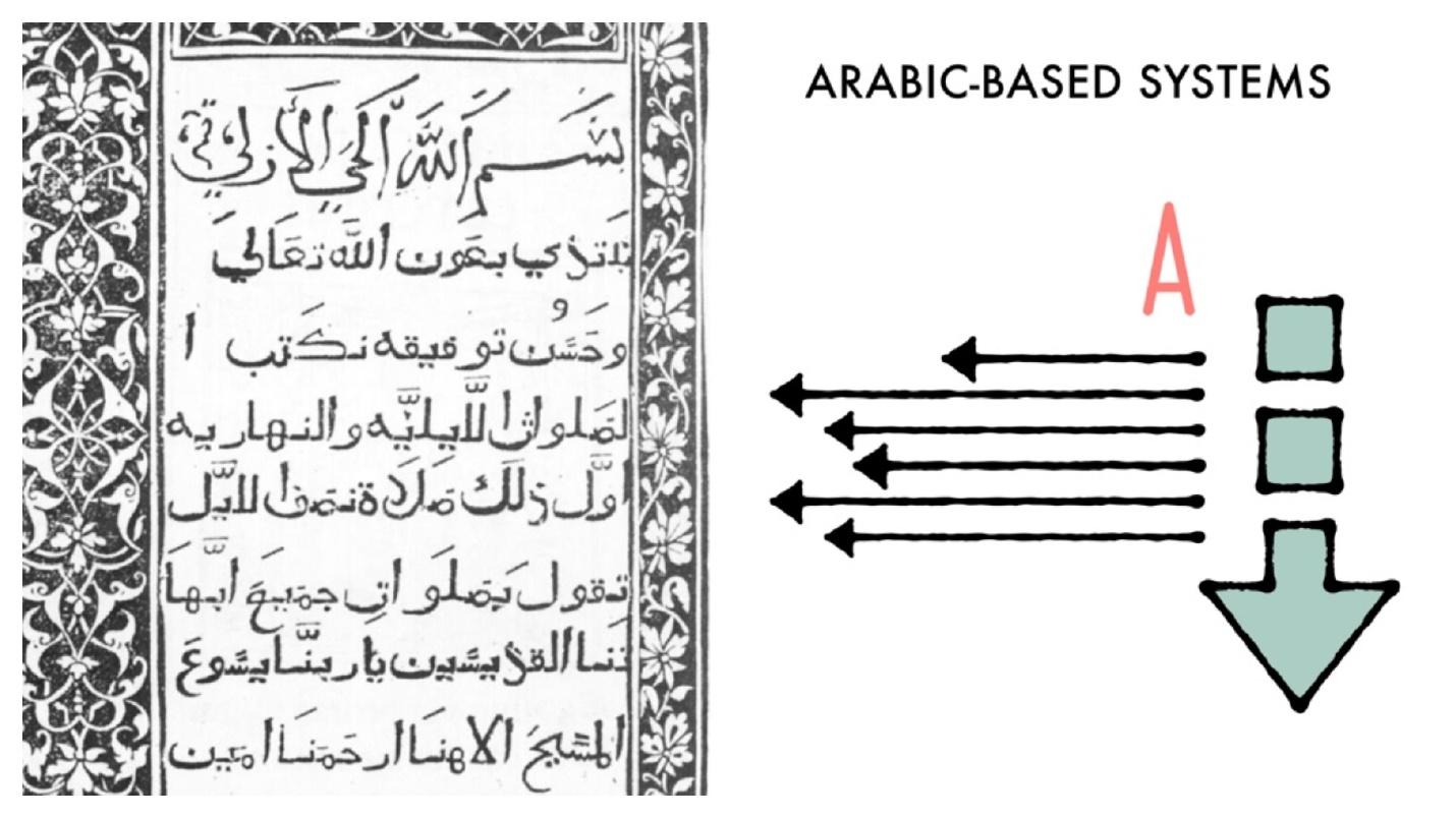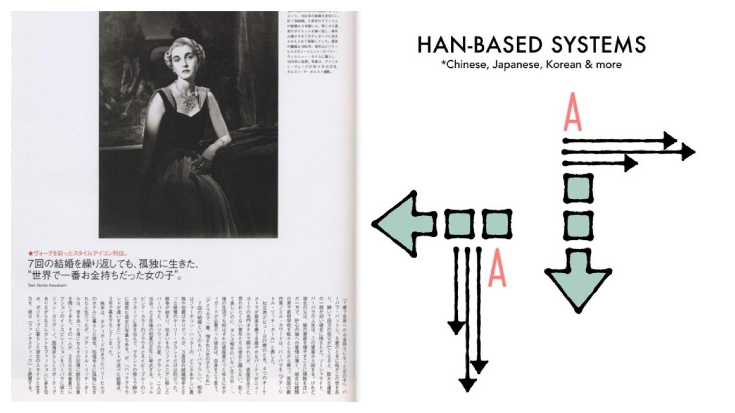 Существует 4 системы написания. Они характеризуются направлением написания и чтения символов по вертикали и горизонтали. Это сложная тема, поэтому просто покажу картинки.