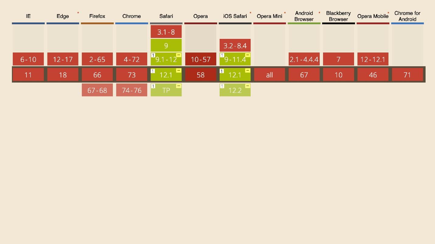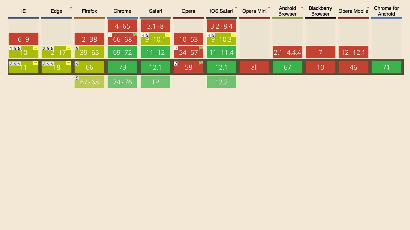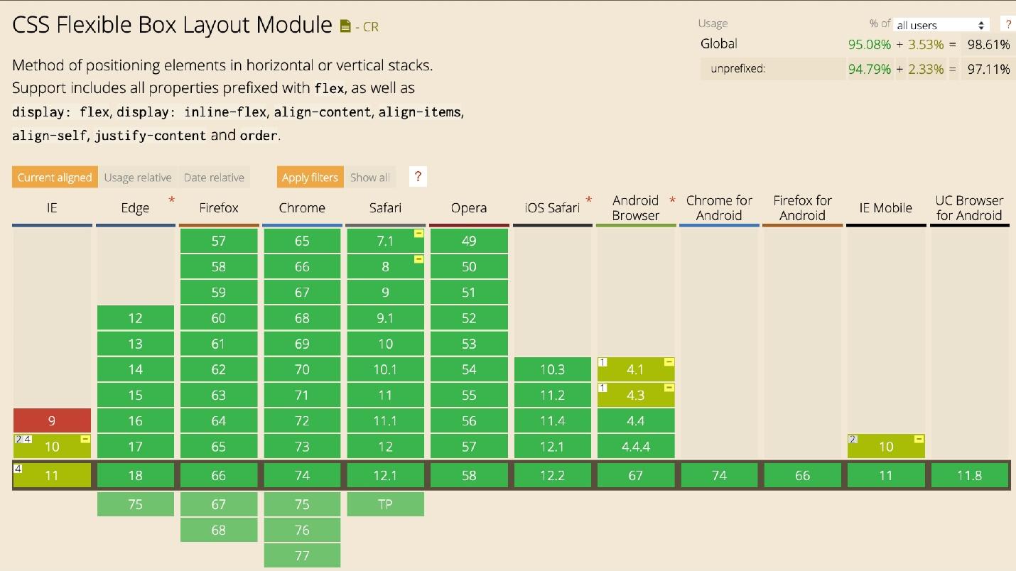 Поддержка замечательная. Не буду акцентировать внимание на Internet Explorer. Мы все умеем верстать под него, особенно разбираться с Flexbox.