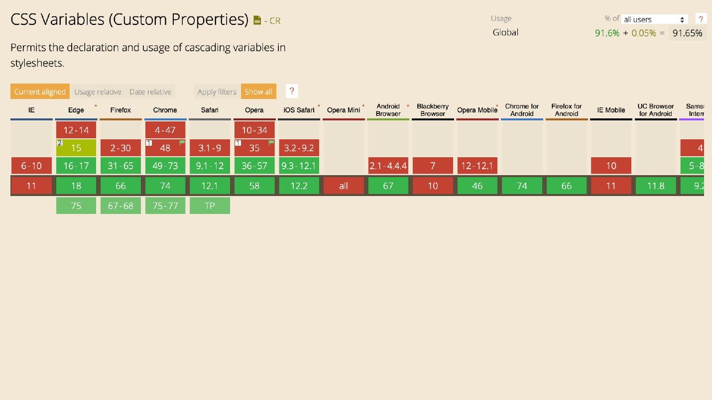 CSS Variables. Используют 60%, слышали 35%. Отличная поддержка, кроме всяких динозавров.
