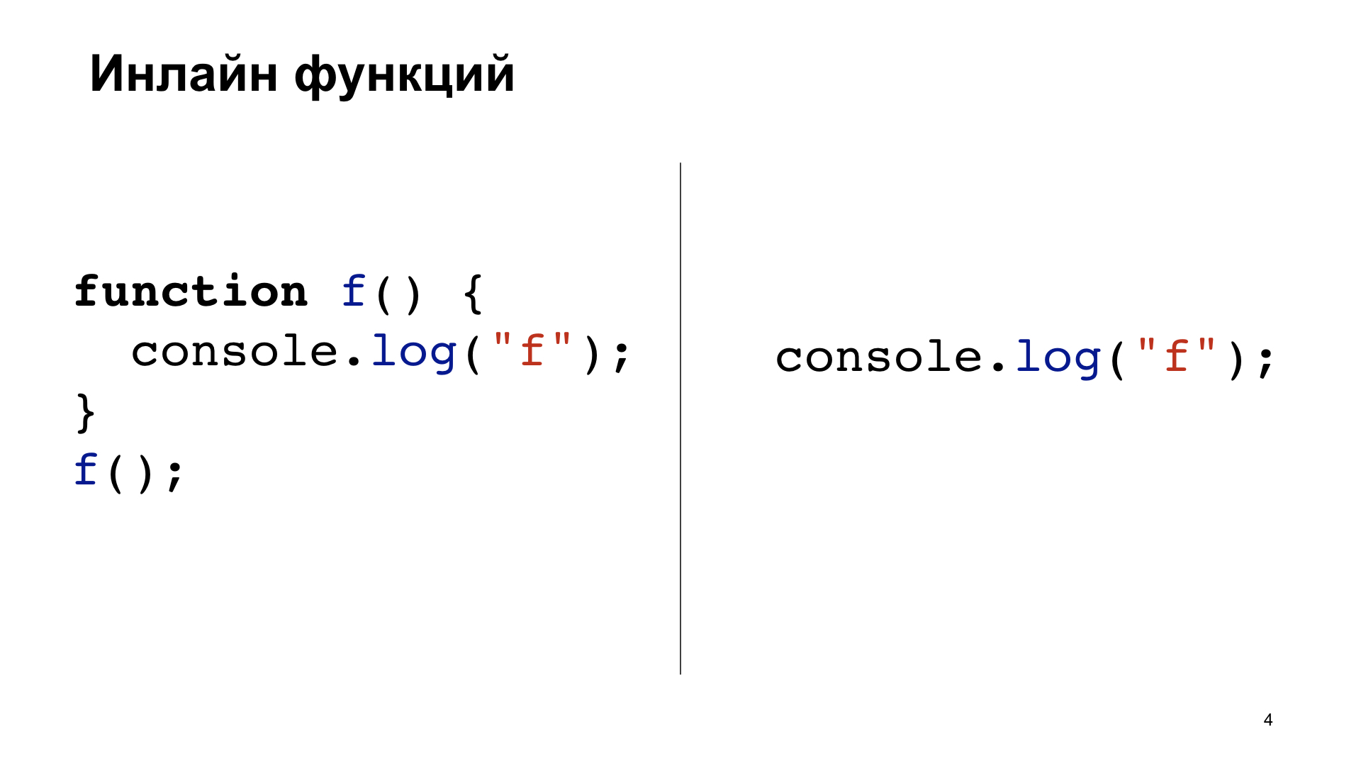 Он умеет удалять неиспользуемый код. Здесь объявлен класс A и класс B. По факту используется только один метод из класса A. Класс B был удален совсем. Из класса A method() был заинлайнен, и мы в итоге получили только console.log.