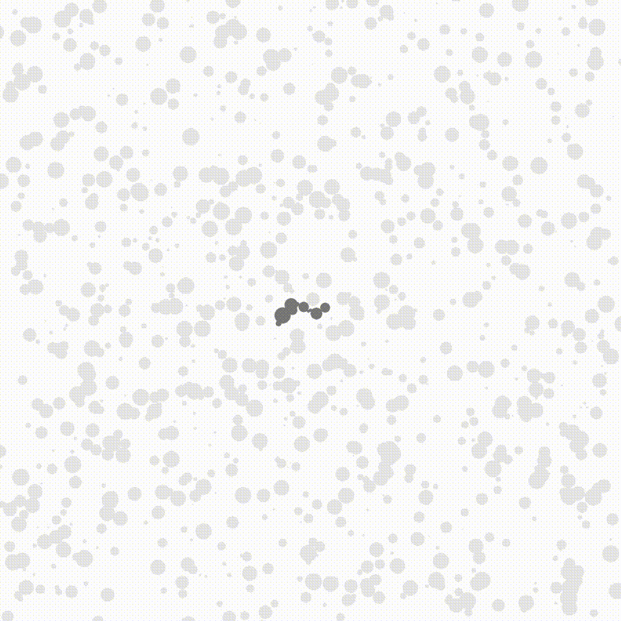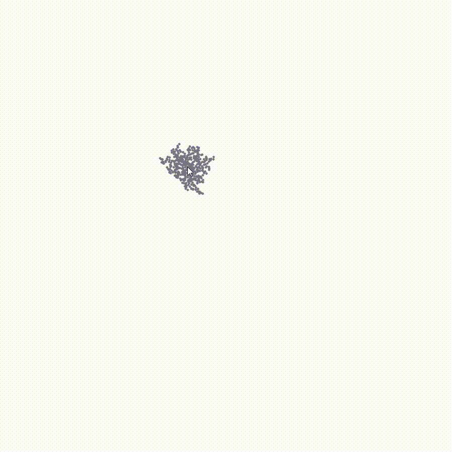 Чтобы вдохнуть немного жизни в систему, нам также нужно подумать о движении этих частиц и силах, производящих эти движения. Для большинства людей классическим подходом будет движение каждой «неслипшейся» частицы на небольшую случайную величину в каждом цикле, обеспечивающее так называемое броуновское движение. Вполне хватит чего-то простого наподобие particle.x|y += Math.random(-1,1).