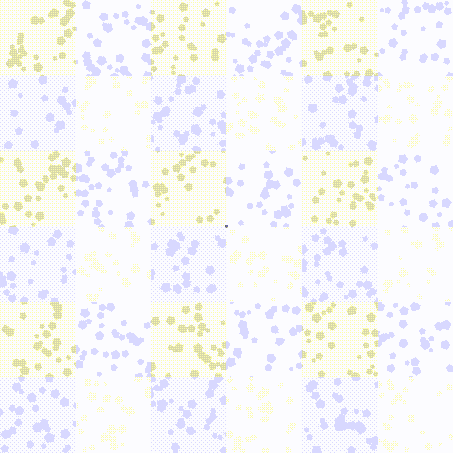 Однако второй компромисс обойти сложнее. Я хотел увидеть, что процесс DLA может создать при неравномерной и неквадратной форме частиц, поэтому я решил, что для широких возможностей в экспериментах в любом случае придётся отделить частицы от структуры сетки. Однако в таком случае придётся использовать такие инструменты, как пространственное индексирование и более сложное распознавание коллизий, которые неизбежно повлияют на производительность. С моей точки зрения этот компромисс между скоростью и гибкостью эстетики стоил того, по крайней мере, для моей серии исследовательских экспериментов. Кроме того, если я найду понравившийся мне эффект, то всегда смогу потом выполнить рефакторинг кода, чтобы оптимизировать его под этот эффект!