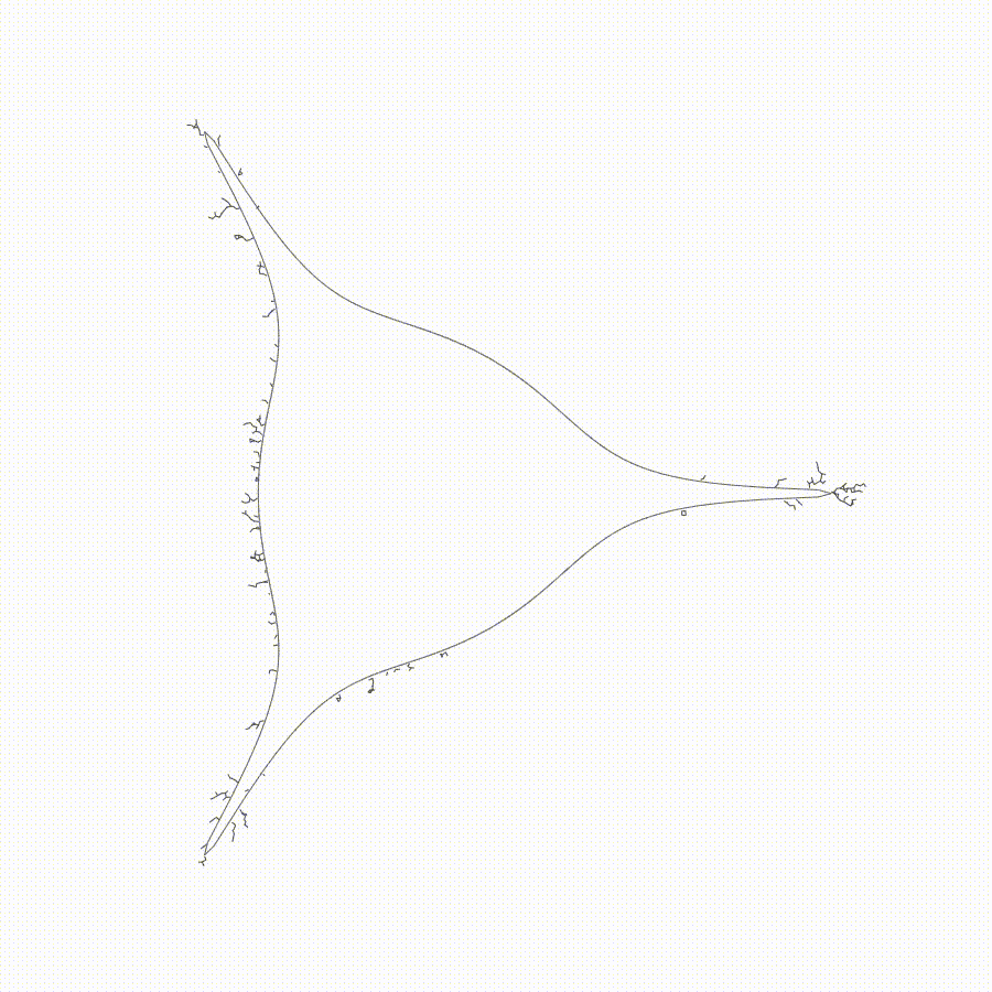 До этого момента я использовал довольно простые начальные условия для выполнения процесса DLA — всего лишь отдельные точки или линии («стенки») точек. Следующим логичным шагом стало добавление произвольной геометрии при помощи внешних файлов SVG.
