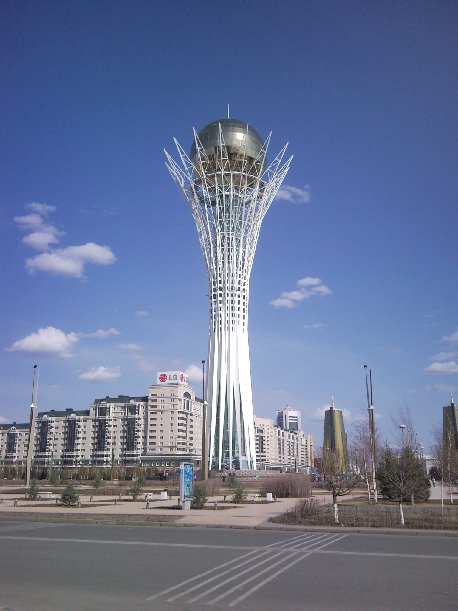 Еще город делится на две части - правый и левый берег. Если на правом берегу застройка, в основном, советская, то левый берег - это застройка столицы, с 1998 года и по наши дни. Разнообразные башни, шатры, и прочие архитектурные изыски, сделанные архитекторами разных стран, которые очень красиво смотрятся с обзорной башни (Бай-Терек), но снизу это асфальт и плитка. И очень мало зелени. Качество всего новостроя, к сожалению, оставляет желать лучшего. Из плюсов могу отметить разве что наличие велодорожек. Здесь сосредоточены органы власти и бизнес.
