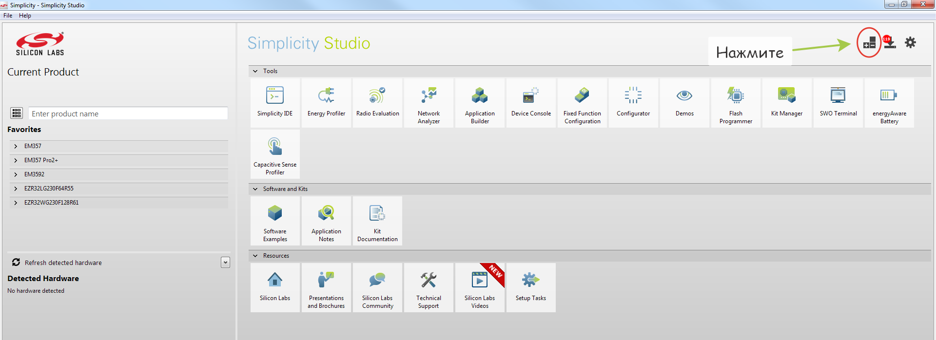 После того, как вы скачали и установили пакет Simplicity Studio, проверьте, установлено ли Wireless-расширение.