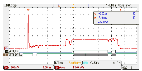 Цикл передачи занимает 7,5 мс, потребляемая энергия при напряжении питания 3.3 В — 444,2 мкДж.