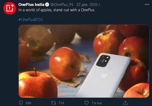 После каждой презентации нового смартфона производители стараются подколоть конкурентов, перечисляя «недостатки» чужого продукта и не забывая прорекламировать свой товар. Так, после октябрьской презентации Apple 2020 года, поступило индийское подразделение OnePlus, опубликовав следующий пост в Твиттер:
