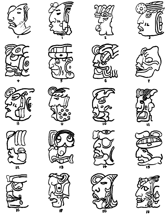 Рисунок 17: Система счисления майя с основанием 20, в которой числа обозначались головами
