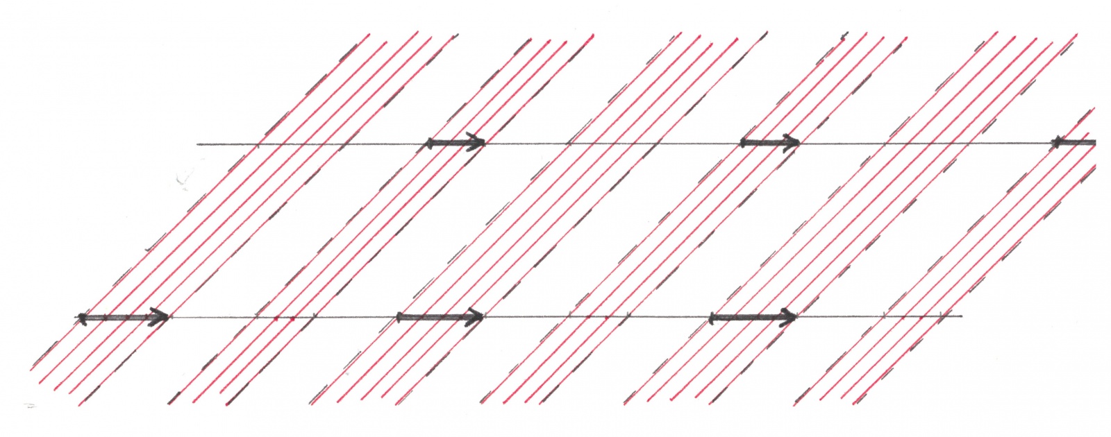 Давайте теперь посмотрим, как в общем случае выглядит совокупность всех теневых полос, например, красного цвета какого-нибудь горизонтального потока (рисунок 8).