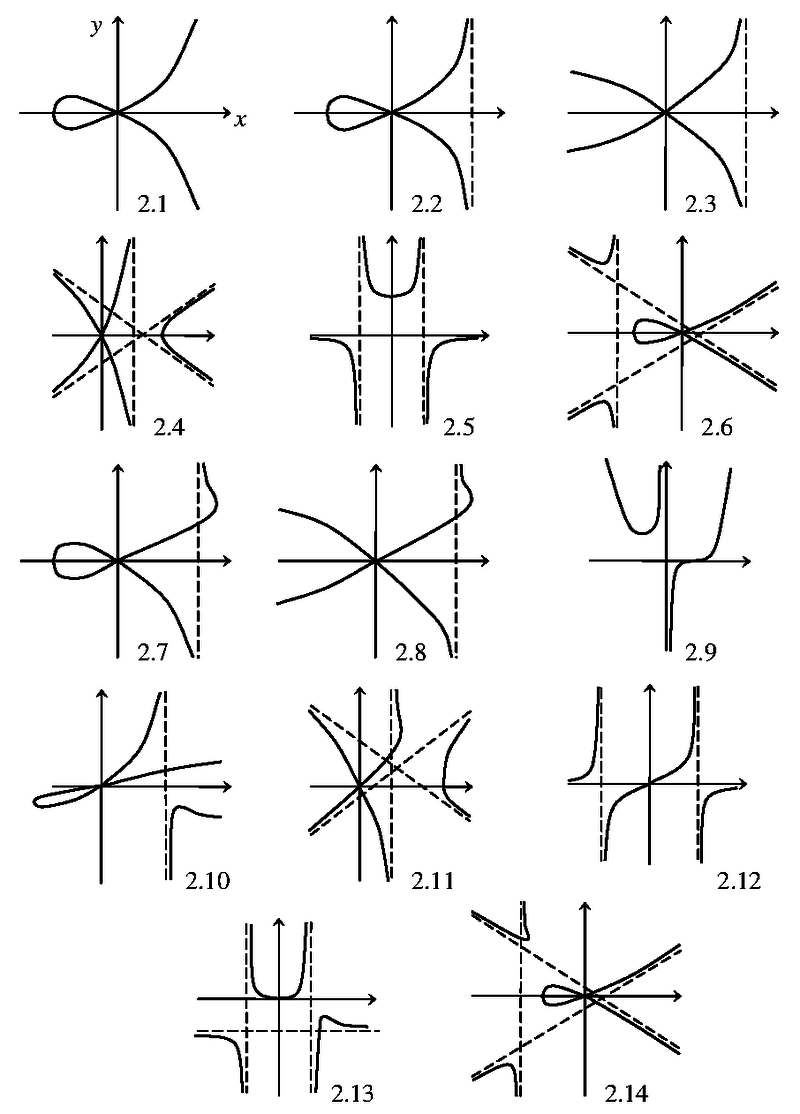 Что касается коник, то на этом можно остановиться. Возможно, во время чтения статьи у читателя возник вопрос: "Раз есть кривые второй степени, то и более высоких степеней наверное тоже?" Да, кривые могут иметь какую угодно степень, но чем выше степень, тем больше возникает видов кривых и тем менее удобны они для изучения, так что о кривых степени выше четвёртой говорить особого смысла нет. После коник идут кривые третьей степени, или кубики. Простой пример кубики – кривая, являющаяся графиком уравнения y2 + y - 2xy2 = x3 - x2. Как видим, степень каждого слагаемого не превосходит 3.