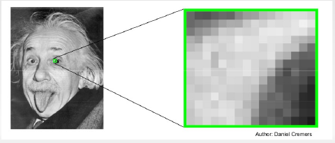 Во-первых, далее мы будем рассматривать наше изображение как функцию от координат пикселей. Таким образом, если мы хотим сказать, что пиксель с координатами х и у белый, то мы можем записать это как I(x,y)==255