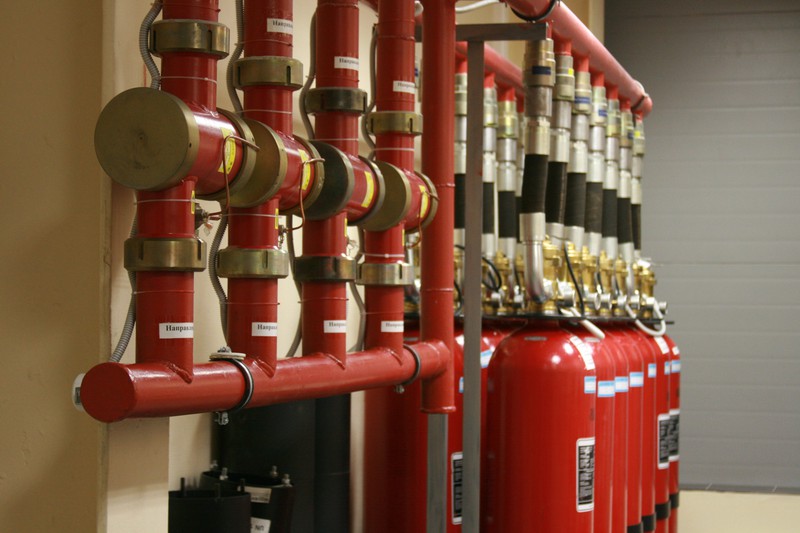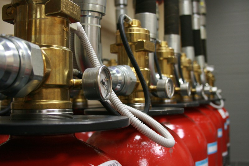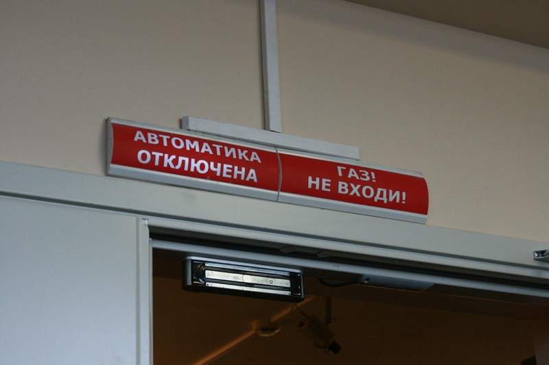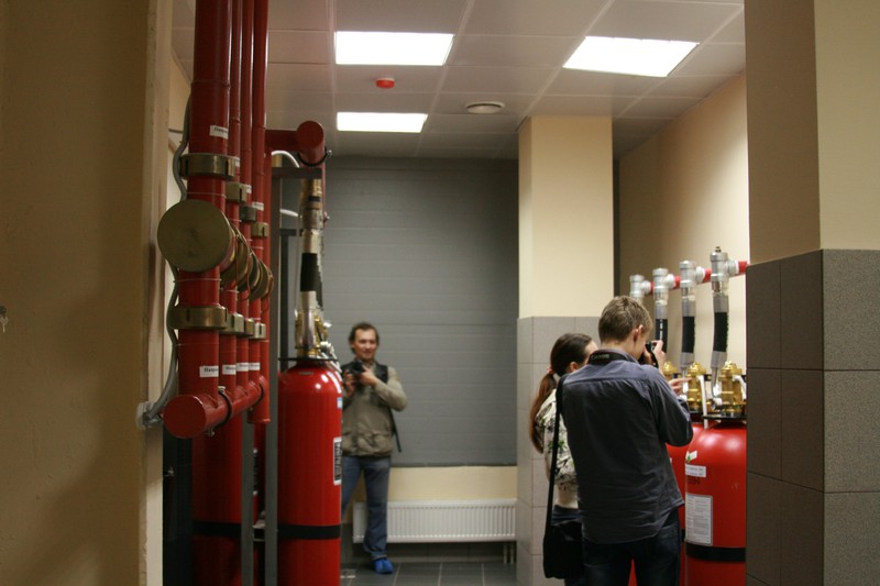 Далее нас повели в зал СГПТ (системы газового пожаротушения). По заверениям, газ в этой системе абсолютно безвреден для человека. Работоспособность системы проверяется ежеквартально.