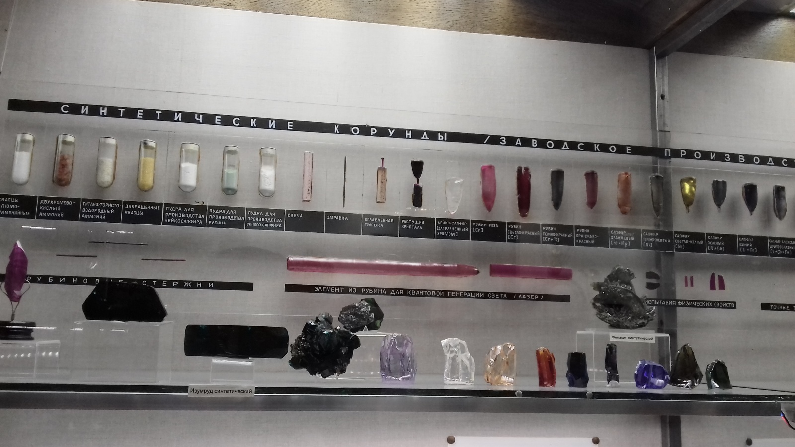 Экспозиция, посвящённая одному из самых твёрдых минералов на Земле — корунду (разновидности — рубин и сапфир). Здесь показано многообразие синтетических корундов и их применение в науке.