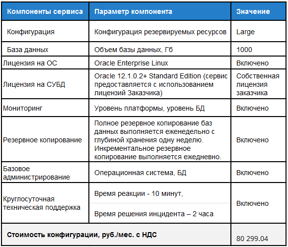 Это базовый вариант сервиса для БД Oracle, MS SQL Server (2012/2014/2016 Standard Edition), MySQL и PostgreSQL, при котором заказчику предоставляется система с необходимыми характеристиками. Экземпляр базы данных располагается на виртуальной машине.