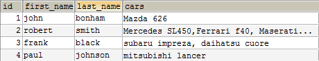 Возьмем, например, сайт коллекционеров автомобилей, на котором каждый коллекционер может зарегистрировать его автомобили. Таблица ниже хранит информацию о зарегистрированных автомобилях.