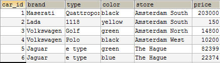 Таблица выше может принадлежать компании, которая продает автомобили и имеет несколько магазинов в Нидерландах.