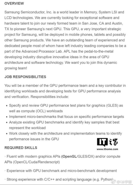 По сообщению источника, Samsung собирается разработать графический процессор, предназначенный для интеграции в однокристальные системы для мобильных устройств. Об этом свидетельствует объявление на работу, опубликованное южнокорейским производителем.