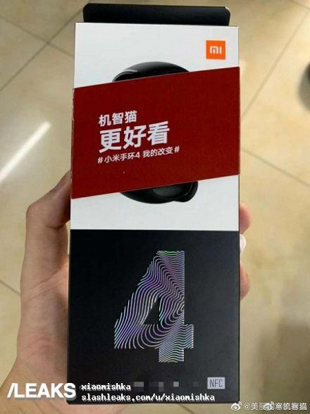 В этот раз инсайдер опубликовал фотографию упаковки Xiaomi Mi Band 4, на котором можно увидеть цифру 4 и упоминание наличия модуля бесконтактных платежей NFC.