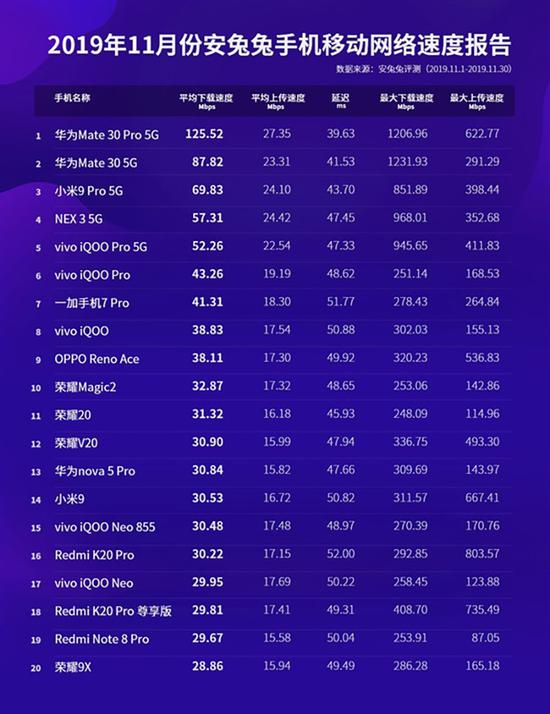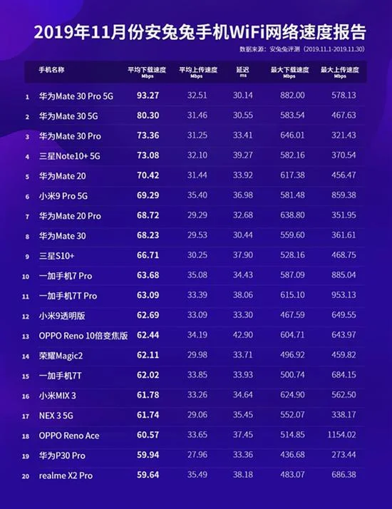Компания AnTuTu опубликовала первые результаты тестирования скорости загрузки данных на современных смартфонах. Учитывались средняя скорость, задержка, максимальная скорость загрузки и выгрузки и прочие параметры.