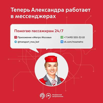 Чат-бот столичного метрополитена «Александра», разработанная группой компаний ЦРТ совместно с командой Московского метрополитена, с момента запуска в 2020 году ответил на 2,4 млн вопросов. Об этом сообщил заместитель мэра Москвы по вопросам транспорта Максим Ликсутов.