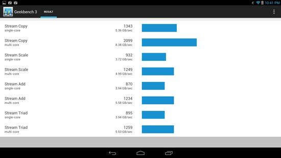 В тесте Geekbench 3 устройство на однокристальной системе Intel Atom Z3770 набрало 960 баллов (одноядерный режим) и 2913 балов (многоядерный режим).