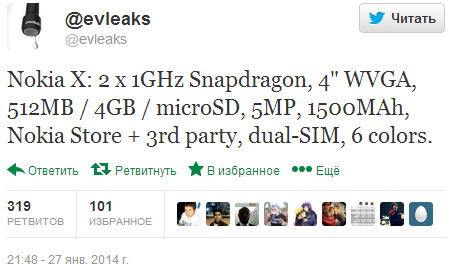 В Сети продолжают появляться все новые подробности о смартфоне Nokia X — первом аппарате компании, работающим под управлением ОС Android. День тому назад изделие было замечено на сайте вьетнамского онлайнового магазина, а сегодня очередной порцией подробностей о смартфоне поделился источник.