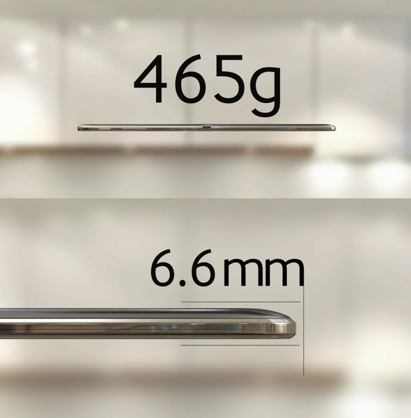 И вот теперь, благодаря утечке очередной порции официальных изображений, мы можем узнать, насколько. По крайней мере, что касается старшей модели. Итак, планшет Galaxy Tab S 10.5 будет весить всего 465 г, а его толщина составит 6,6 мм. Тоньше и легче только Sony Xperia Z2 Tablet (424 г и 6,4 мм соответственно). Что касается младшей модели, предположительно её масса составит 287 г.