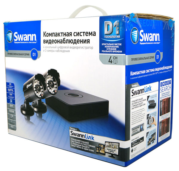 Вся система помещается в коробке, внутри которой находятся две камеры Swann Pro-510 с общим блоком питания, а также регистратор. Стоимость комплекта составляет около 18 тысяч рублей. Найти подробный обзор данного оборудования, а также посмотреть видео можно по ссылке: http://www.ixbt.com/surv/swann-4150bh.shtml.