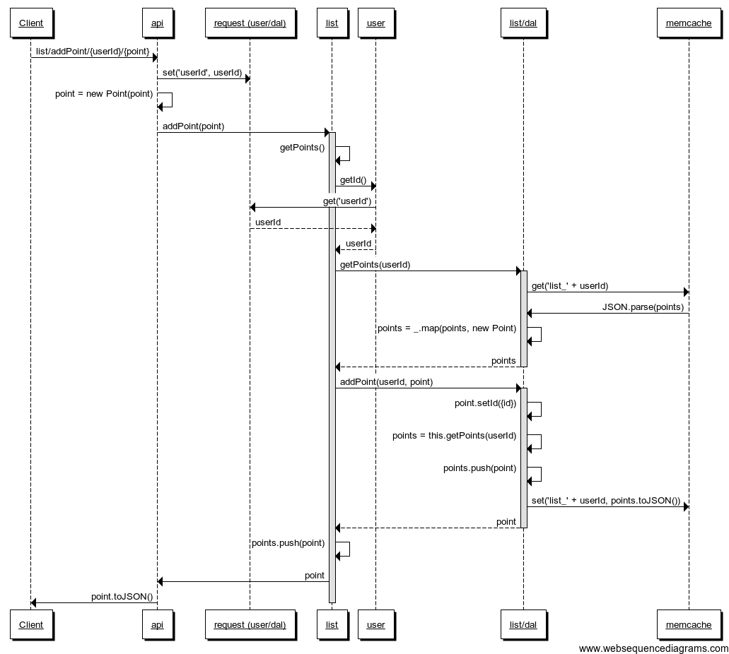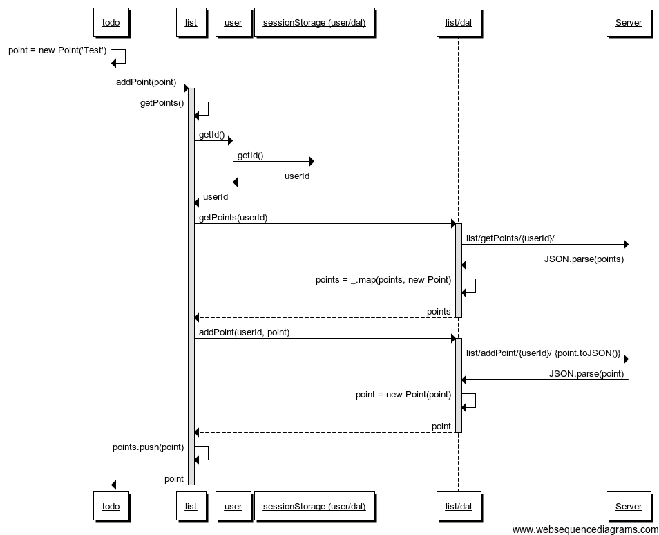 Что же произойдёт при вызове todo.addPoint('Test')? Попробую изобразить основные шаги на диаграммах. Для начала рассмотрим взаимодействие модулей в браузере: