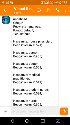 Самого бота, его алгоритм мы также разместили на IBM Watson и соответственно он использует там же и движок Visual Recognition с более-менее обученной нейросетью.