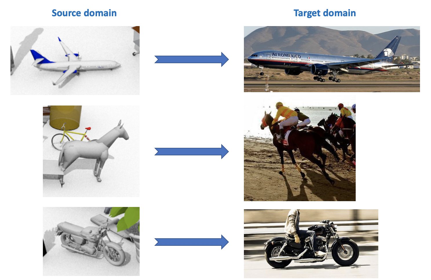 Развитие глубоких нейронных сетей для распознавания изображений вдыхает новую жизнь в уже известные области исследования в машинном обучении. Одной из таких областей является доменная адаптация (domain adaptation). Суть этой адаптации заключается в обучении модели на данных из домена-источника (source domain) так, чтобы она показывала сравнимое качество на целевом домене (target domain). Например, source domain может представлять собой синтетические данные, которые можно «дёшево» сгенерировать, а target domain — фотографии пользователей. Тогда задача domain adaptation заключается в тренировке модели на синтетических данных, которая будет хорошо работать с «реальными» объектами.