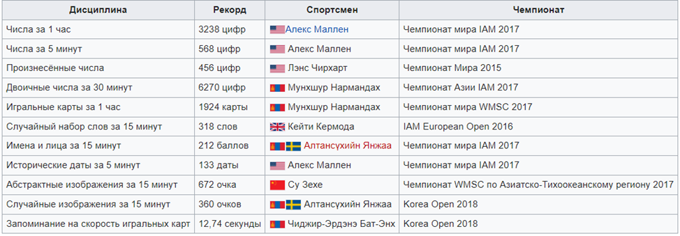 В данном случае также отметим, что запоминание в методе локусов тесно переплетено с ориентированием и прокладыванием пути. Но сегодня электронные запоминающие устройства и инфографика повсеместно проникли в нашу жизнь, поэтому метод локусов актуален не столько с практической точки зрения, сколько со спортивной. С 1991 года проводятся чемпионаты мира по запоминанию, большинство участников которых опираются на метод локусов. Дисциплины чемпионата — это запоминание последовательностей, например:
