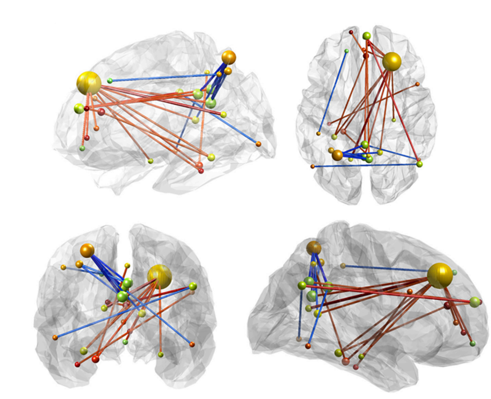 Эта иллюстрация приведена в статье и демонстрирует различные срезы мозга и степень их связности. Более красные линии означают, что данный вид связи был сильнее у мнемонистов, синие линии — что сильнее оказались представители контрольной группы. Особенно характерно выглядят боковые срезы (слева вверху и справа внизу), свидетельствующие, что у мнемонистов отлично связаны лобные и височные доли, то есть, что они могут автоматически «проговаривать» или «слышать» те запоминаемые элементы, которые обычному человеку кажутся совершенно абстрактными либо отчасти закрепляются только в зрительной памяти.