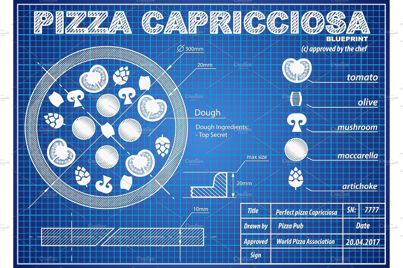 Мы даже запросили у нашего поставщика чертежи пиццы, которой мы будем кормить вас на хакатоне. Он прислал нам это (на самом деле нет)